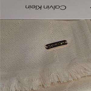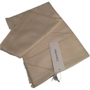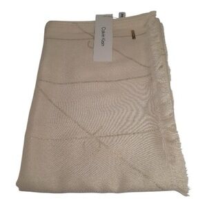 Calvin Klein Diagonal Metallic CK Logo Cream Scarf Wrap
