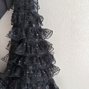 • Ruffled sequin detailing throughout