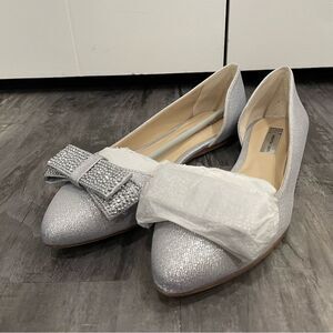 NWT INC International Concepts Women's Silver Bow Flats size 8