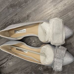 Silver flats with a bow