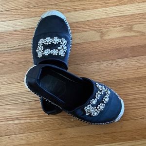 ROGER VIVIER Paris Flower Strass Satin Espadrillas. Leather inside. Size 5 🌟HP🌟