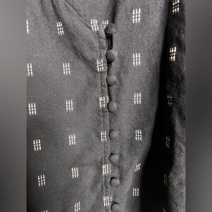 Made of a cool, textured fabric, this fresh take on a wrap top closes at the side with a row of sweet covered buttons. With shirring at the shoulders, back and cuffs, it has an easy, flattering fit.