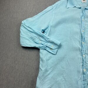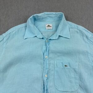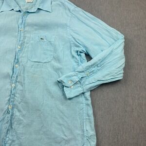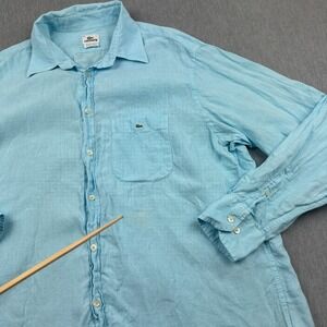 Lacoste Shirt Men 45 XL/2XL Blue 100% Linen Long Sleeve Button Up Crocodile Logo