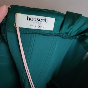 House of CB Loretta Emerald Green Satin Off Shoulder Dress size M NWT