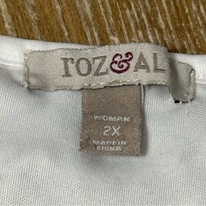 Roz & Ali Crochet Lace Overlay Boxy White Blouse Women’s Plus Size 2X Drawstring