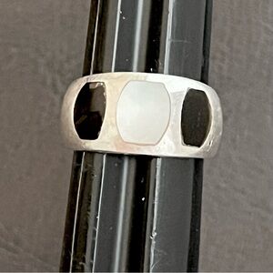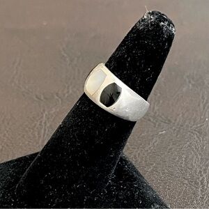 Vintage sterling silver 925 black onyx and mother of pearl ring Size 5.75