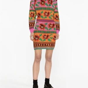 Kenzo Crewneck Multicolor Patterned Sweater Dress NWT size Large