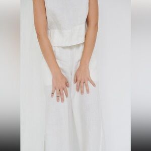Wide-leg, natural linen trousers Ocean. Straight-cut, slightly cropped silhouette for a simple, comfortable yet clean and chic look. Elasticated waistband and spacious front pockets are the key elements here. No unnecessary details – just classic high-rise summer linen pants made out of 100% pre-washed linen.