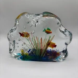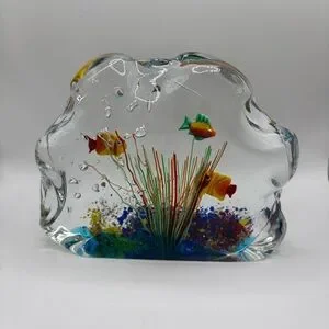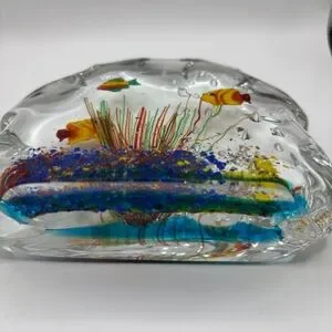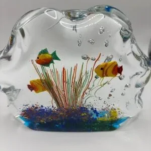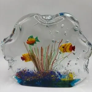 Murano Glass Multi Color Paperweight Fish Aquarium