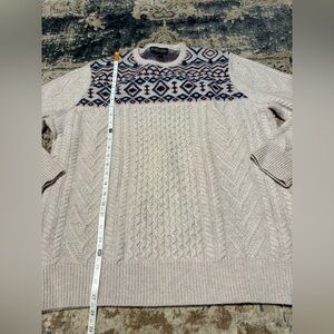 Brooks Brothers Aran Cable Fair Isle Sweater 100% Wool Men's Size XL