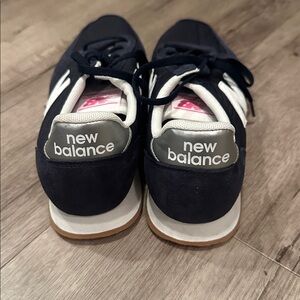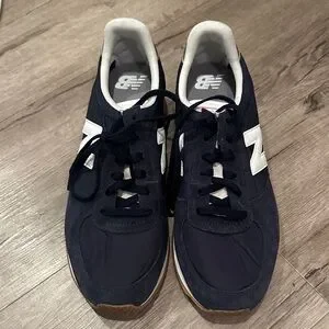 Classic New Balance sneakers in dark blue. Features white accents and comfortable fit.