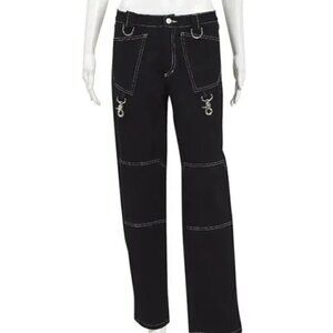 Near-new condition. Tag size M, with an approx. 27 inch top waist measurement lying flat.. Very dark blue to black. Belt loop rings in stock photos sold separately. Founded in Stockholm, Sweden, by brothers Jacob & Axel Hägg, Brashy Studios is contemporary Streetwear Made In LA. Inspired by contemporary culture, art, movies and video games. Brashy Studios is an anti-establishment ethos, their designs are oversized and gender fluid despite being created for a female audience. Notorious for making science safety goggles the most sought after accessory. Brashy Studios is a fusion of retro chic meets futuristic aliens, non tacky 90s throw backs and a whole lot of post-soviet meets pre-internet rave child. * crafted patchwork ruffled washed cuffed tapered bell bottoms bell sleeve hugging wrap around stretchable multi texture color block rainbow multi colored backless zip up comfy versatile solid plain patterned checked polka dot animal print camo paisley geometric plaid corduroy wool mesh satin silk faux leather denim chunky ribbed button up zippered seamless cut low neck high knit cozy warm duty lightweight textured soft monochrome neutral colorful luxurious edgy preppy grunge bohemian contemporary retro modern sleek distressed embroidered floral sheer pleated low high fit relaxed slim classic bold feminine elegant stretchy sporty graphic chic boho bodycon flowy short long sleeveless cropped high waisted tailored loose fitted trendy vintage sustainable breathable office dressy
