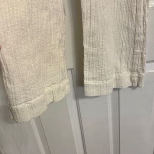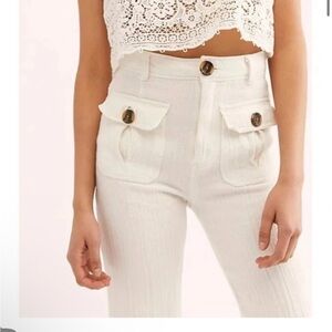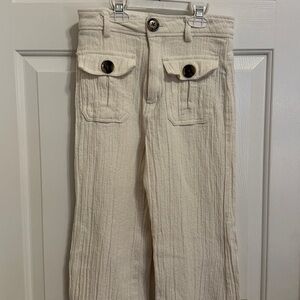 In a linen-cotton blend, these textured pants are featured in a retro-inspired bell silhouette.