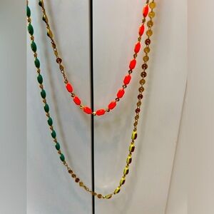 This is a Stella and dot.brand necklace that has various colors and can be worn as one long chain or a double necklace. It was purchased from Nordstrom. Beautiful necklace in excellent shape