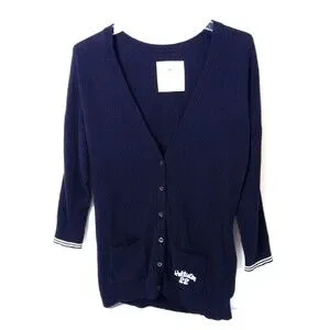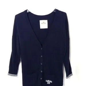 Vtg Hollister Cardigan Sweater Women L Black V-neck Y2K Preppy Elana Bella Logo