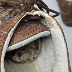These are worn in and have been loved. The lining at the interior of the laces is peeling a shown in the photos. It doesn't affect wear but is present between the leaves and tongue of the shoe. Please see all photos as this is the exact item you will receive. Thank you so much for looking. I'm always open to reasonable offers. Have a beautiful day!