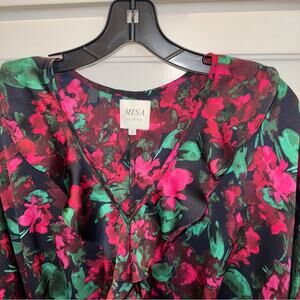 MISA Los Angeles Talah Floral Satin Bodysuit Small