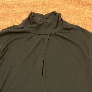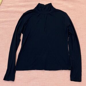 AI description Chic black blouse with long sleeves. High neckline for a sophisticated look. Perfect for versatile styling.