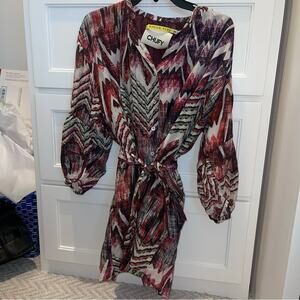 From the Dolce Vita Collection. This button-front minidress is finished with full blouson sleeves and contrast piping.