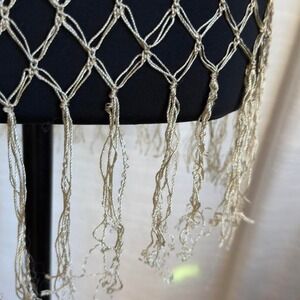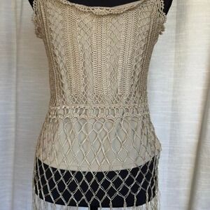 Authentic early 2000s Candie's crochet overlay top with open-knit detailing and fringe hem. Features a layered tank-style base with delicate crochet straps — perfect for boho, fairycore, beachy Y2K looks, or festival outfits.