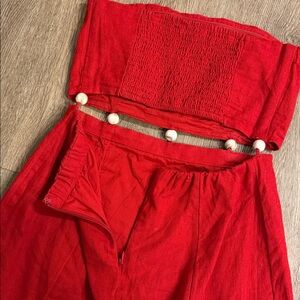 Abercrombie & Fitch Red Linen Cutout Beaded Dress