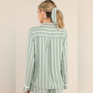 Get ready for some serious chill time with the PJ Salvage Stripe Hype Sage PJ Top. Made from soft and cozy material, this top features trendy stripe patterns and a fun sage color. With this top, you'll feel stylish and comfortable during your lazy days (and nights!) at home.