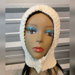Stay warm and stylish with this cozy cream knit hooded headpiece . Perfect for chilly days.