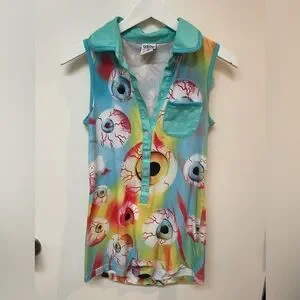 Drop Dead Eyeball Print Sleeveless Button-Up Tunic