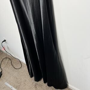 Jenny Woo Evening Gown Womens 8 Black Satin Halter Maxi Formal Dress Bridesmaid