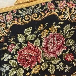 Vintage Petit Point Evening Bag β’ Ornate Clasp β’ Floral Front β’ 8.5β Wide