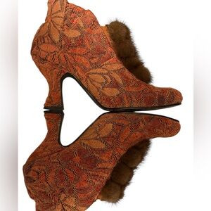 Baci Woman’s “Daisy” Orange Burgundy Mink Ankle Boots