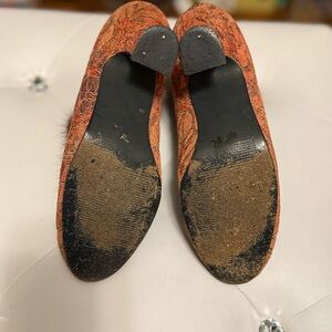 Step out in style with these elegant orange patterned heels.