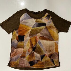 Women's Top "Zara" Brown Geometric Color Block Size Large
