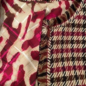 Anne Klein Fall Houndstooth Satin lined fringe trim Blazer Old Money Career 14