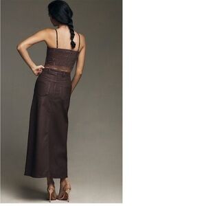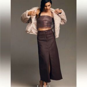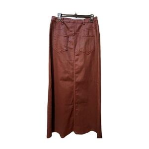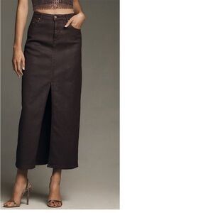 NWT Anthropology Burgundy Madi Front Slit Coated Denim Skirt Size 14