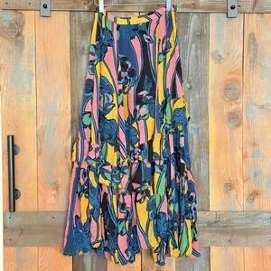 Free People Bring Back Summer Hi Low Tiered Floral Boho Skirt Size 0