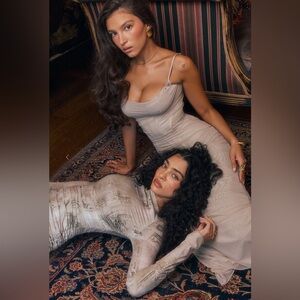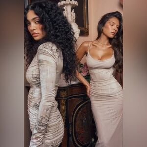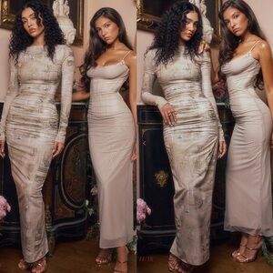 House of CB Lanetta ruched bateau neck long sleeve georgette maxi dress