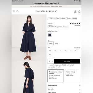 Banana Republic stylish cotton poplin Navy Belted Midi Dress