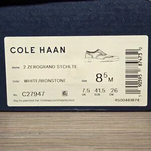 New!! Cole Haan 2.ZERØGRAND Stitchlite Sneakers 8.5M White Ironstone Lightweight