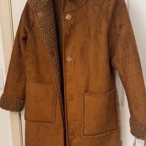 Cozy tan sherpa jacket by Lucky Brand. Perfect for chilly days.