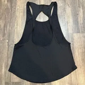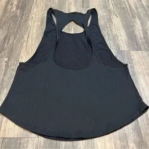 Women’s F21 Black Racer Back Workout Shirt Open Back Relax Fit Size XS