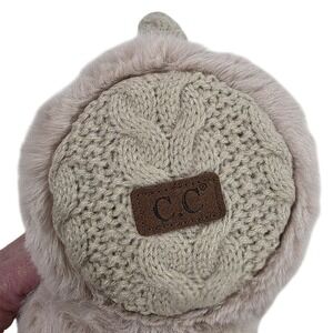 C.C. Cable Knit Faux Fur Earmuffs Beige Adjustable Winter Warm New Outdoors