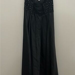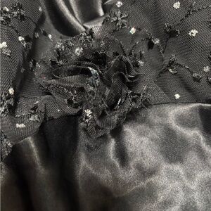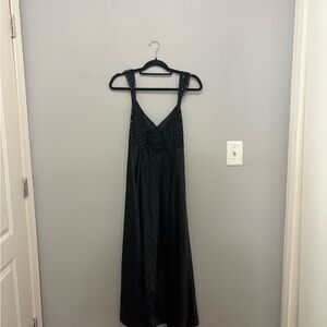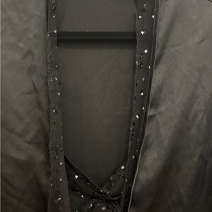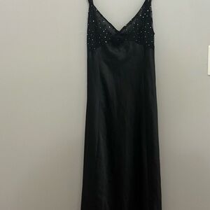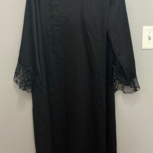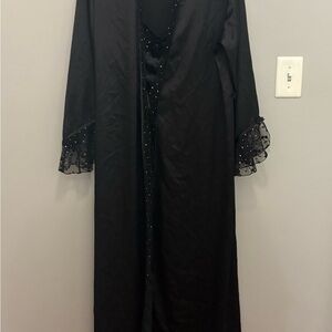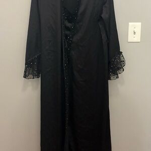 Elegant black nightgown and robe by Delicates. Sleeveless design with subtle embellishments. Ideal for a sophisticated look. Never worn