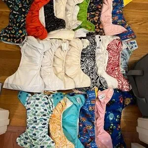 A great way to try out a bunch of different brands or to just fill out a stash. All in good condition with no stinks a couple with faint staining. No holes found. Some elastic is relaxed, but all are functional. Snaps and velcro intact. Will include a few soaker pads as well for the shells.
