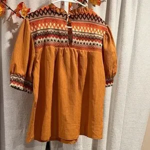 Boho 70’s vibe Embroidered Detailed top Sz.XL rusk orange color