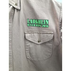 Get ready to hit the road in style with this 2016 Bike Week LAUGHLIN Dal-con Promotions 34th Anniversary Men's Vest. Made of high-quality cotton canvas, this vest features a solid light brown kind a tan color pattern with a logo accent. It's perfect for any biker looking to add a touch of hipster, beach, biker, motorcycle, hippie, beer, or hip hop style to their wardrobe. This vest is machine washable and comes in size 2XL. It's a regular fit that's perfect for any season, whether it's summer, fall, or spring. And with its cotton lining material, it's comfortable enough to wear all day. So gear up and hit the road in style with this BIKER CLOTHING COMPANY vest.
