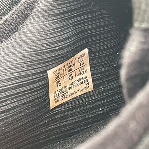 Sleek black design with white accents. Ideal for running and workouts. Lightweight and comfortable fit. Sz13 Wide