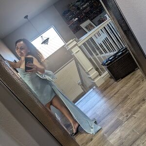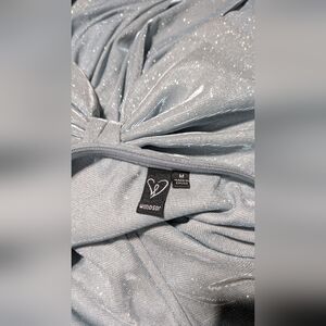 Shimmering silver dress with a stylish bow. Ideal for glamorous events.