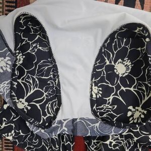 Miraclesuit Black Cream Floral One Piece Swimsuit, v-neck, slimming, pull on, attached Wirefree padded cups.