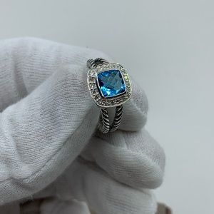 David Yurman Petite Albion w/ Blue topaz & Diamonds 5x5mm